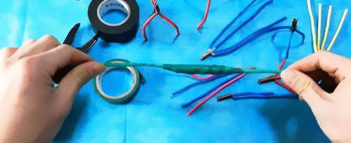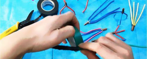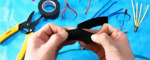 2.然后先在電線的接頭上順時(shí)針環(huán)繞上一層電氣絕緣膠帶。